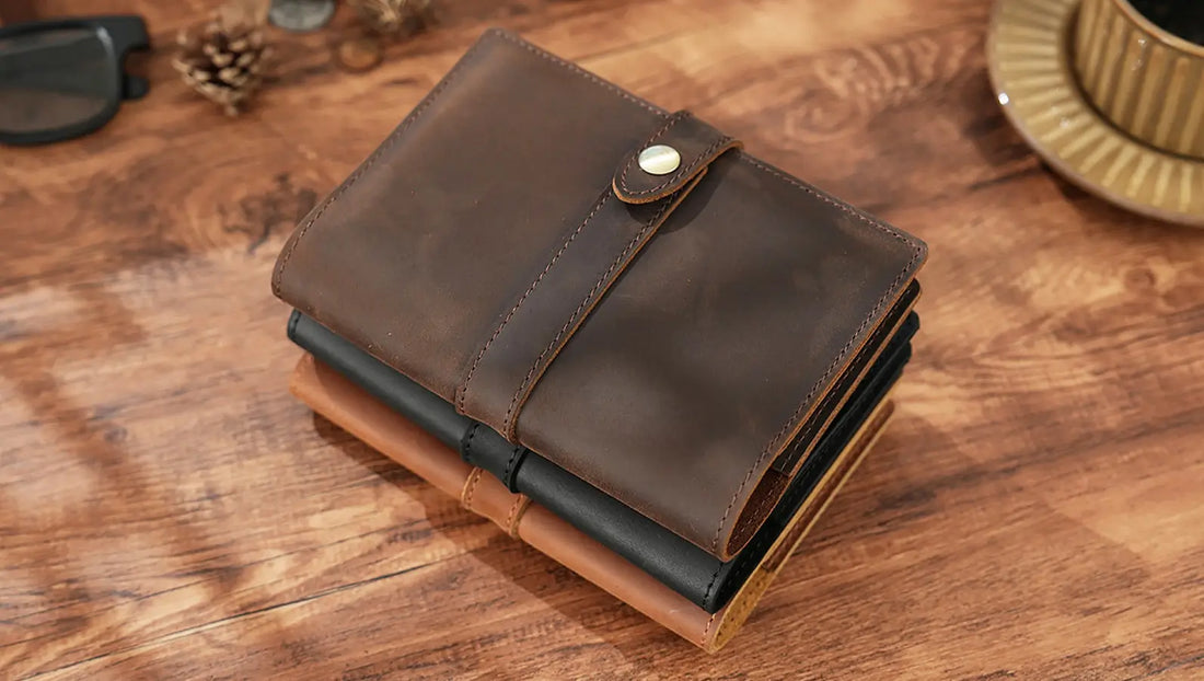 The Leather Passport Holder with Notebook combines passport holder, travel wallet, and field notes cover into one beautifully crafted piece. Made from premium full grain crazy horse leather, it develops unique patina with every journey.